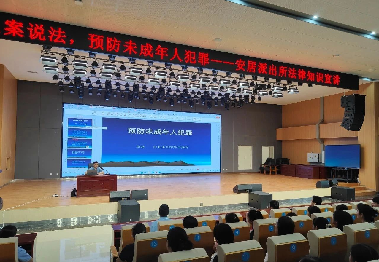 为增强未成年人的法律意识,营造安全、和谐的校园环境,5月30日,山东圣和律师事务所应济宁市公安局市中分局安居派出所邀请,走进山东省济宁市任城区安居街道安居一中,以“未成年人远离犯罪”主题开展法治进校园活动。