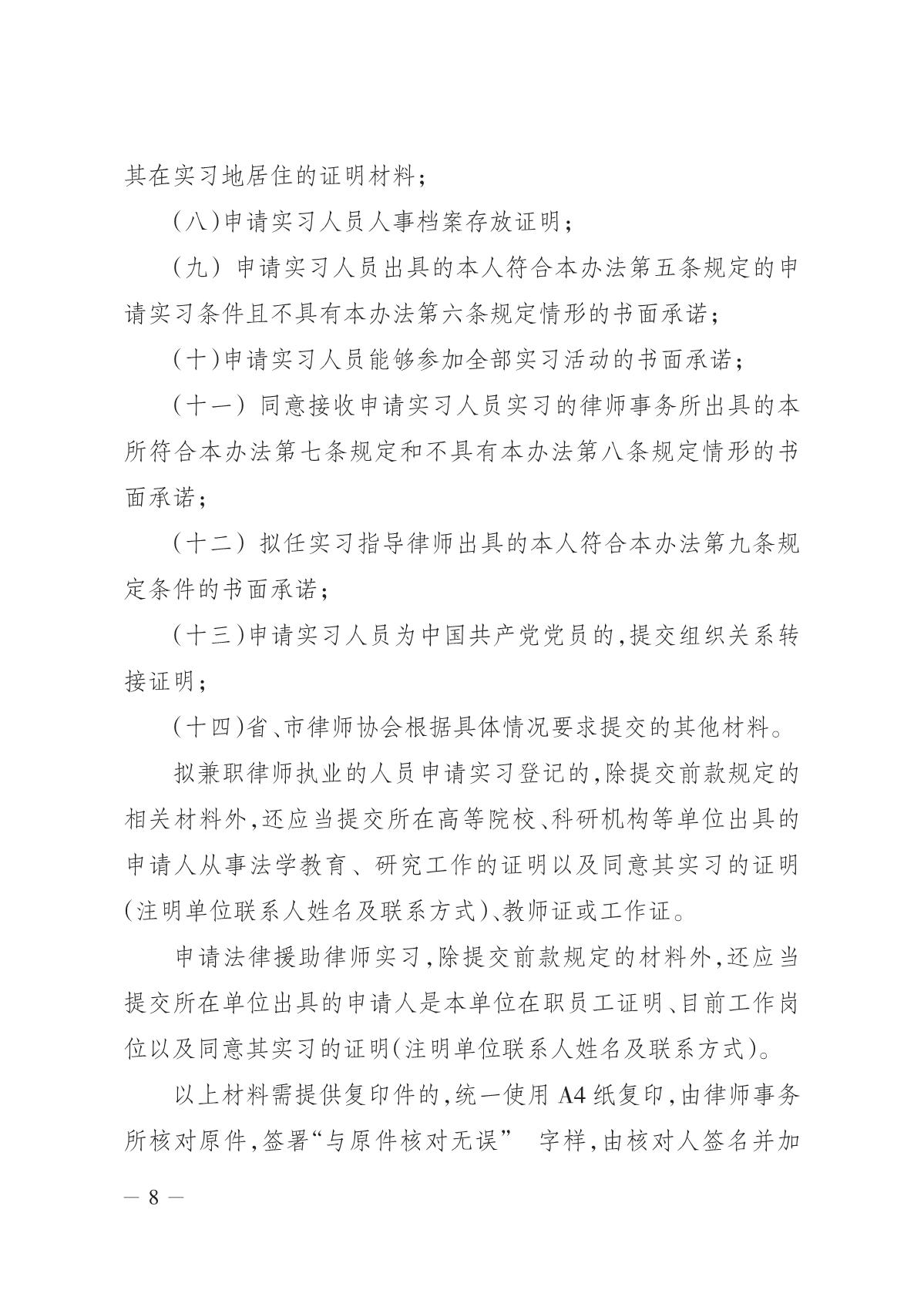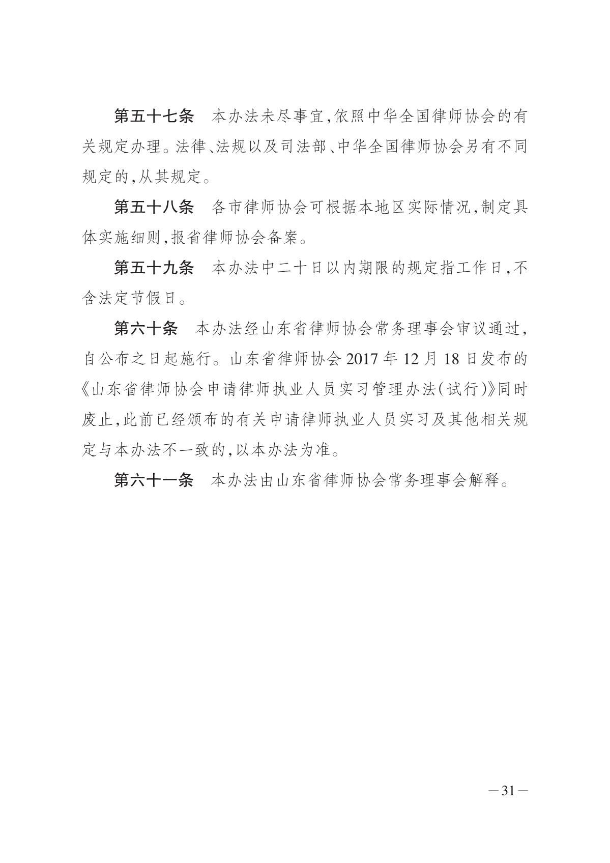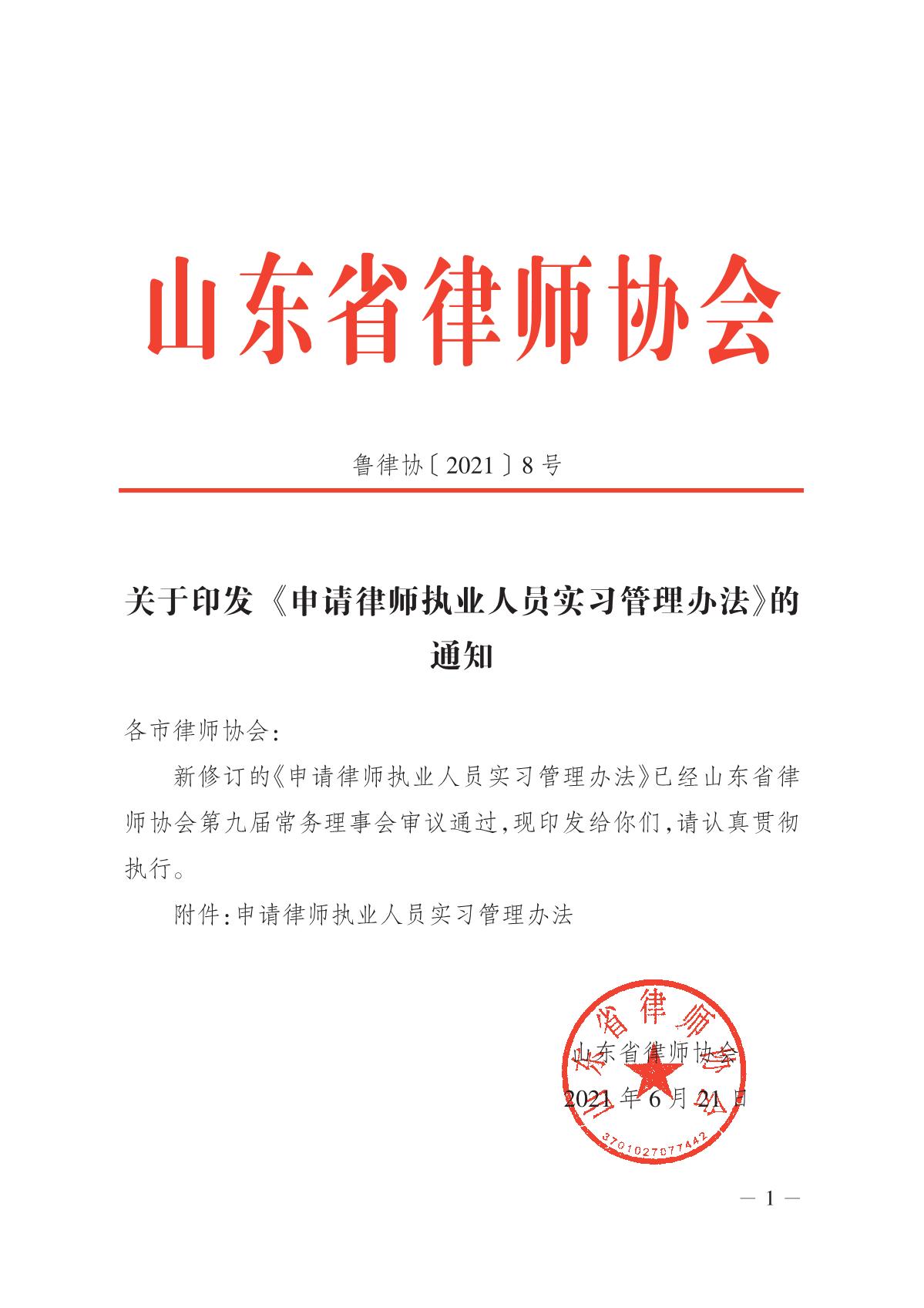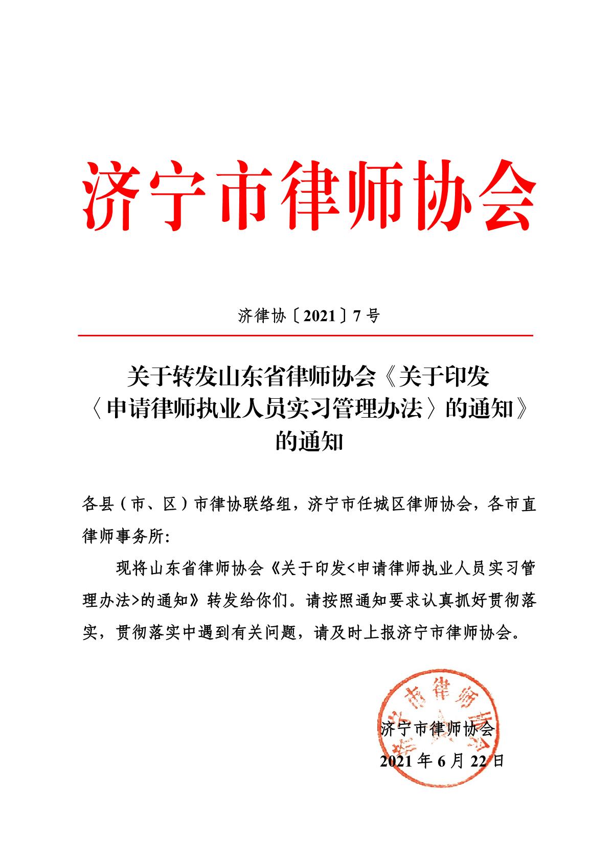 关于转发山东省律师协会关于《印发申请律师执业人员实习管理办法通知》的通知